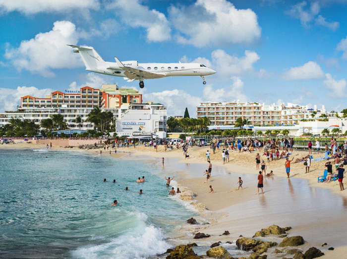 This airport on the Caribbean island of St. Maarten sits right next to a public beach.