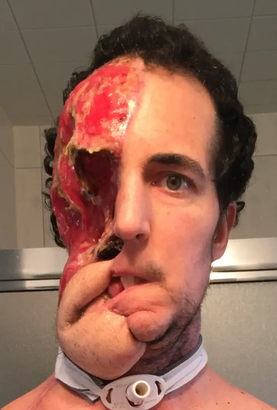 After the surgery, McGrath’s doctors tried to reconstruct his face but his body rejected their efforts. This left the left the side of his face red, raw, and exposed.