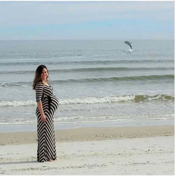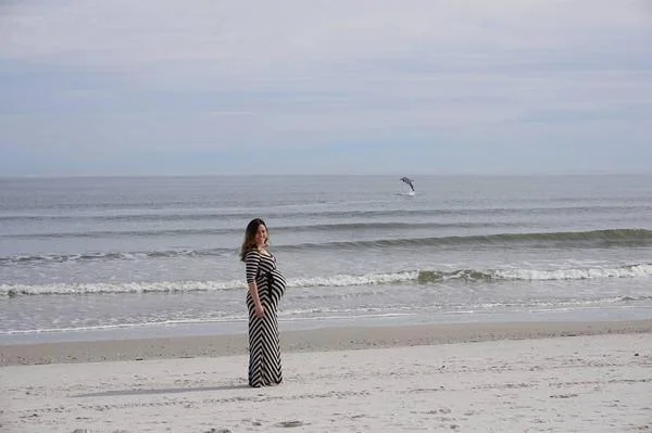 Anticipating the arrival of their child, a Florida dad-to-be, Dan Mozer, seized the opportunity to take maternity pictures of his wife, Angelina, at Atlantic Beach. As Angelina posed against the ocean backdrop, Dan snapped a series of shots, unexpectedly capturing a dolphin leaping out of the water in one frame.