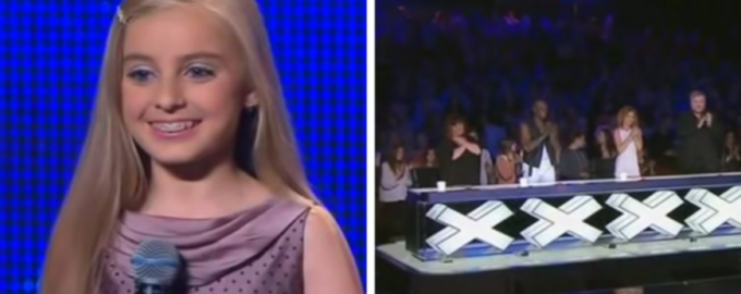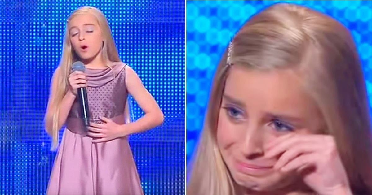 A 13-year-old girl tears up as she performs an Andrea Bocelli classic.