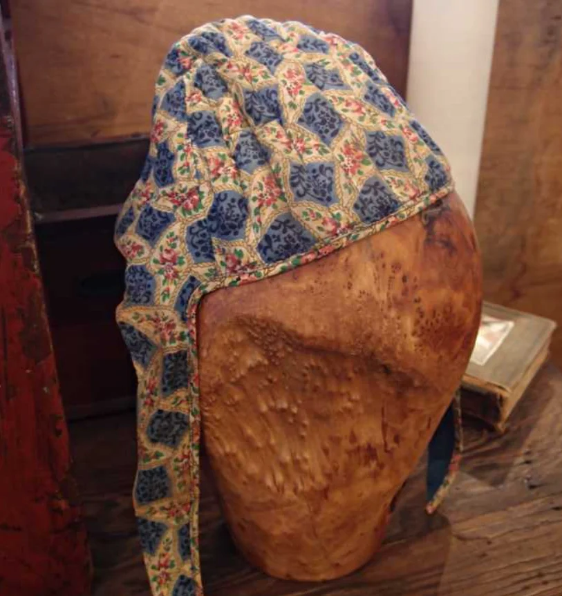 This unusual cap is actually an early handmade swim cap. Back in the 1920s, people loved to model swim caps after the popular aviatrix style. But rubber materials were hard to come by for home sewers. So they came up with a creative solution – channels and stitching were machine-sewn, and the cap was filled with sand. Why sand? Well, it acts as a water blocker, allowing swimmers to choose their own fabric design instead of being limited to black or yellow rubber. Definitely a unique approach!