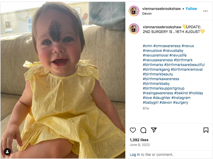 Parents always try their best to protect their children, and these parents did something special for their daughter. Little Vienna Brookshaw was born to her mom, Celine Casey, in April 2021 in the United Kingdom. When Casey first saw Vienna, she noticed a birthmark on her forehead, between her eyebrows.