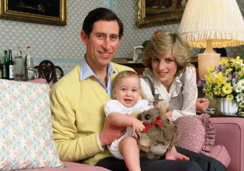 Accompanied by her husband, Princess Diana leaves the hospital after giving birth to her first son, William.
