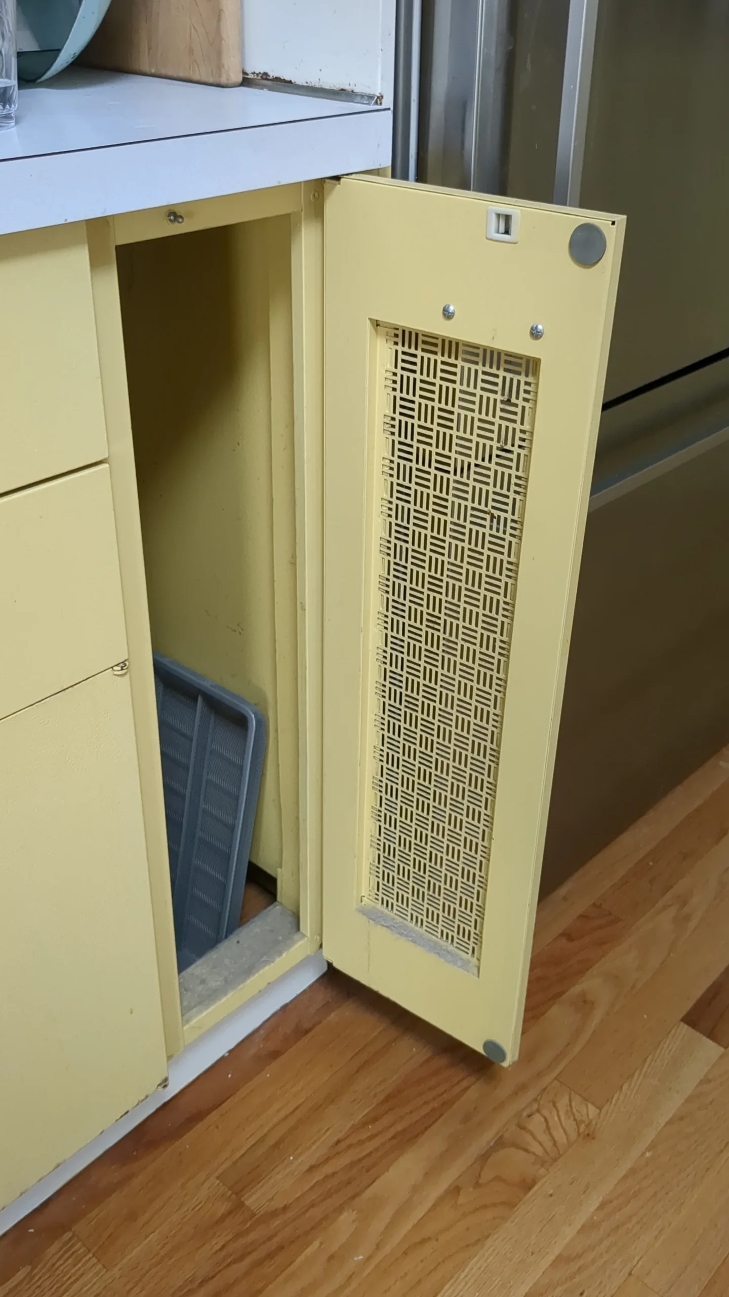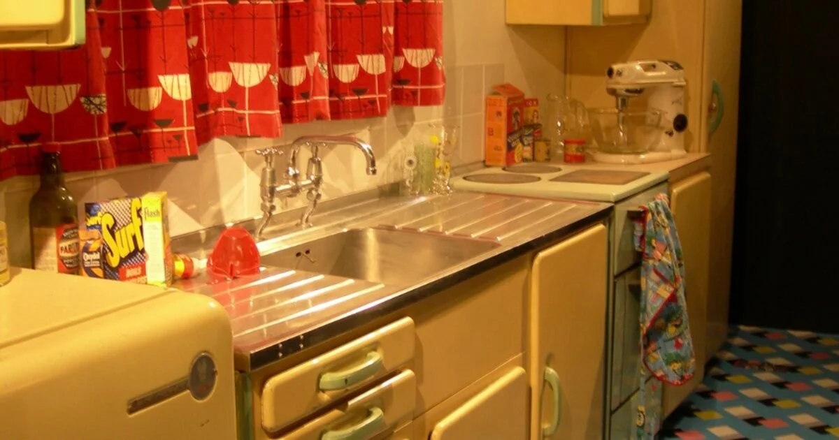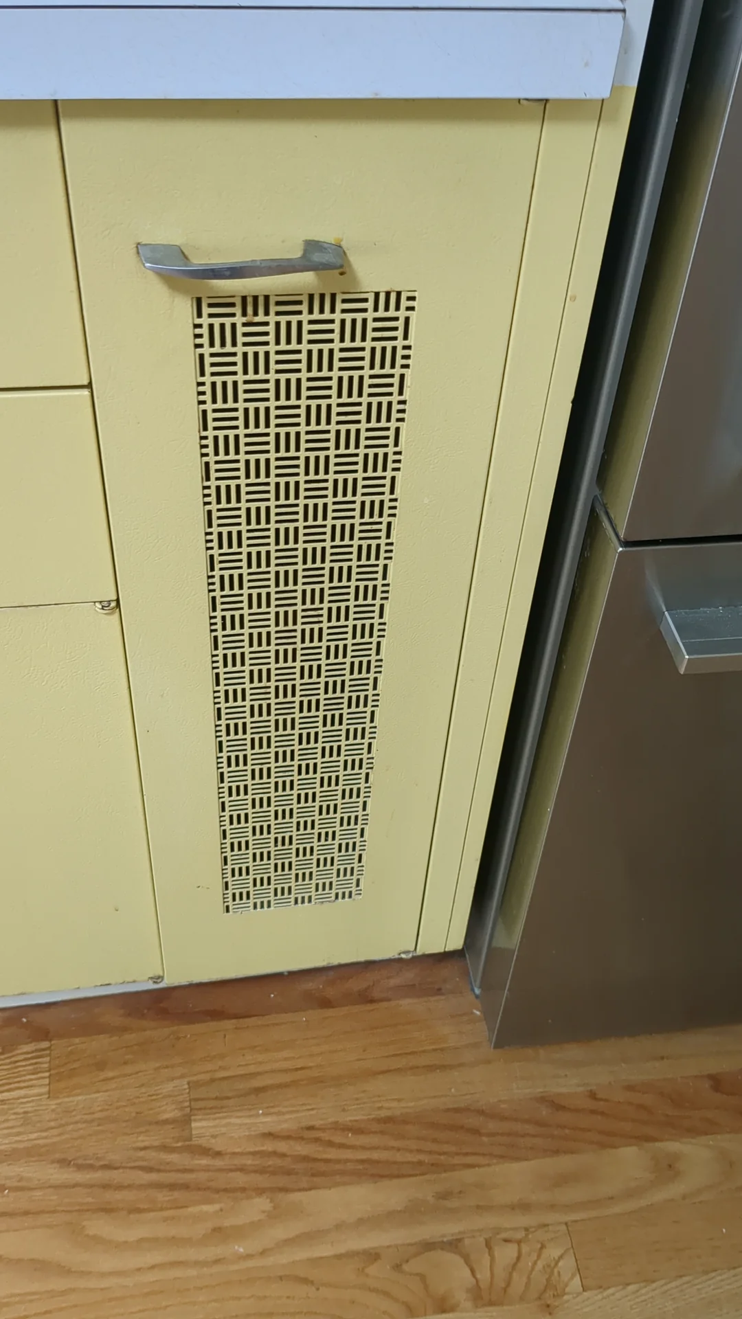 Fast forward two decades to the energetic 70s, and the kitchen, the throbbing heart of the home, underwent a transformation, embracing the era’s love for color and life. Yet, this stalwart metal cabinet remained, its vented doors a curious enigma.