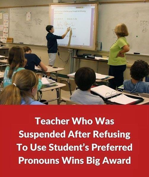 In May, Ricard appeared in federal court and was awarded a settlement of $95,000. This victory allows her to communicate with parents in a manner consistent with her religious beliefs and continue to refrain from using pronouns for students who have requested ones that do not align with their biological sex.