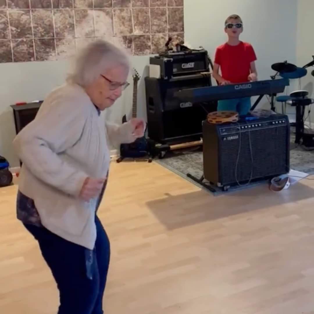 Grandma, meanwhile, is grooving to the music and flexing her dance skills as she enjoys the pleasure of not needing the walker.