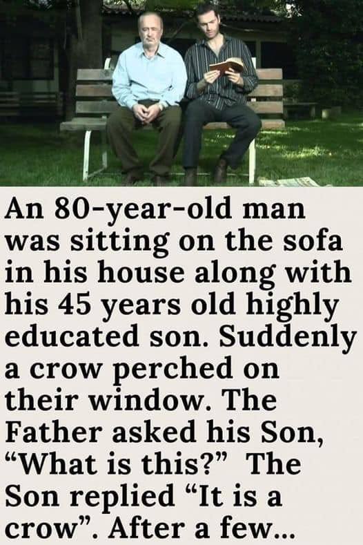 In a serene moment at home, an elderly father and his educated son found themselves interrupted by a bird landing on their window. The father repeatedly asked his son what it was, each time receiving the same answer: “It’s a crow.” As frustration grew, the son’s patience waned, leading to an outburst of annoyance.