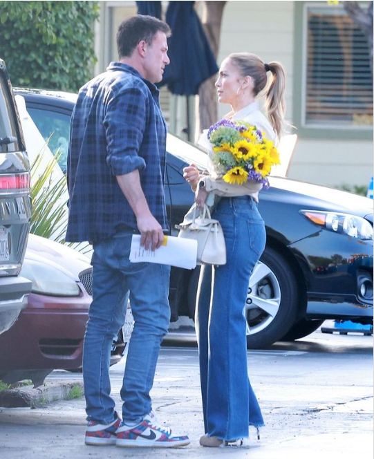 They were seen together in a parking lot, Ben clutching some paperwork and JLo holding a bouquet of flowers, following an event for Ben’s kids that his ex-wife Jennifer Garner apparently attended.