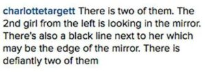 She clarified that two sisters are depicted in the picture, and they are both staring into mirrors.