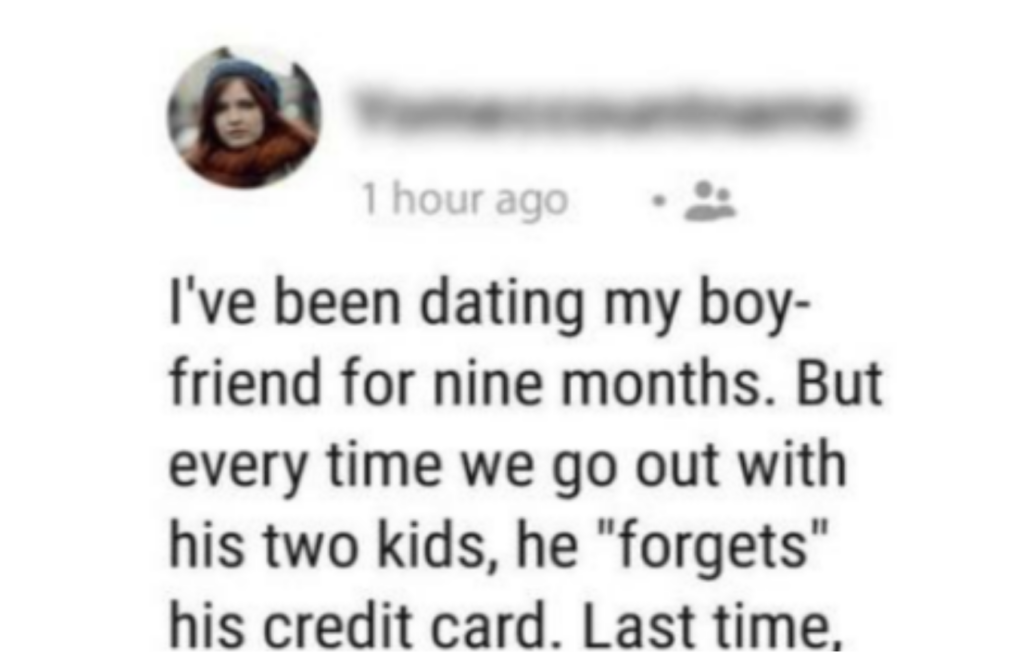 Later, the woman received a phone call from her boyfriend, who continued to insist that she was selfish for not showing sympathy towards him and his children. In response, she stood her ground. She explained that she could no longer afford to pay for their meals every time they went out and that it wasn’t fair to expect her to do so.