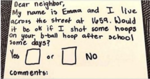 In her letter, she asked a simple yet earnest question: could she use their basketball hoop to shoot some hoops after school? Now, this may seem like a tiny ask, but for her, it was a big deal. She anxiously awaited their response, unsure of how they’d react.
