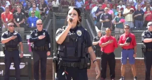 Officer Tanya Keplinger’s stuns the stadium with her National Anthem performance