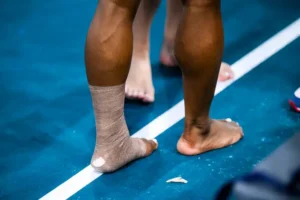 The two ladies disappeared for a brief moment, after which Simone returned with medical tape wrapped around her left leg. According to a news outlet, the gymnast had to get her leg taped due to tweaking her calf during her floor exercise warmup.