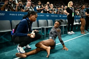 Simone Biles’ appearance at the Paris Olympics is being discussed online for various reasons.