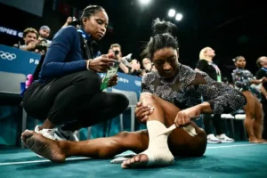 Video footage shared online shows Simone executing what is considered the “hardest vault in the world.” She hit a Yurchenko double pike, making her the first woman to do so at the Olympics. However, people still expressed concern for the gymnast upon seeing her perform with a wounded calf.