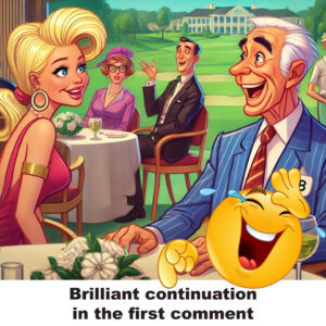 Bob, a 70-year-old, extremely wealthy widower, shows up at the Country Club with a breathtakingly beautiful and very sexy 25-year-old blonde-haired woman who knocks everyoneβs socks off with her youthful appeal and charm and who hangs over Bobβs arm and listens intently to his every word.
