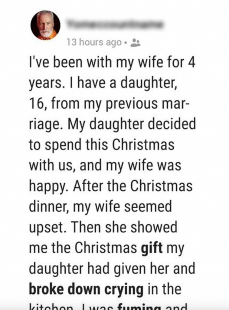 The holiday season is a time of joy and togetherness, but it can also bring tensions and misunderstandings within families. In a heartfelt Reddit post, a man shared an incident that caused a rift in his family. His daughter, in a thoughtless act, gave her stepmother a bra as a gift, unknowingly hurting her deeply. This situation prompted the man to address the issue and teach his daughter about accountability.
