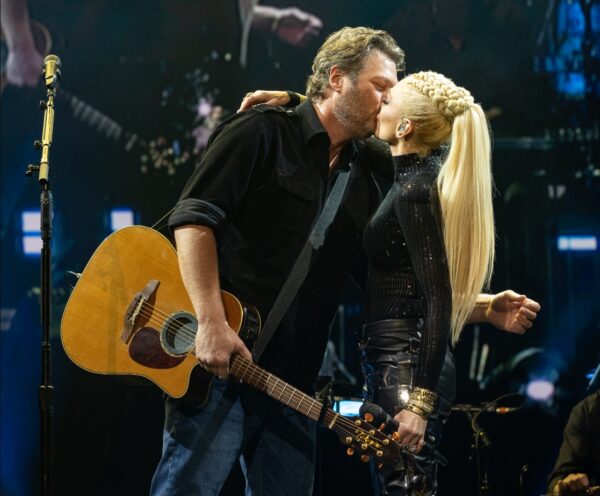 “Normally, if I do a show and Gwen comes out, we do it towards the end because it’s a big deal. That’s Gwen Stefani right there,” Shelton told the crowd. “But Gwen wants to start drinking tequila now, a lot of tequila, so we were like, let’s just bring her out towards the beginning so she can get down to business. But we do have one more song to do before she starts that.” The couple then performed their second No. 1 hit, “Happy Anywhere.”