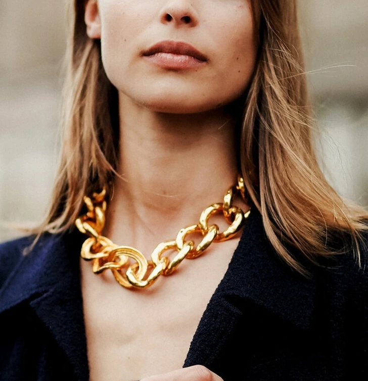 Spring/summer 2025 runways of Acne Studios, Rabanne, and Roberto Cavalli brought us a trend, that is a “comeback”. Bold, oversized chains are making a statement this year. Whether worn as necklaces, bracelets, or even anklets, these pieces add an edgy flair to both casual and formal outfits.
