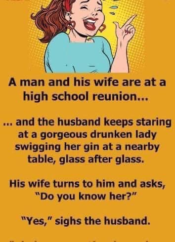 A man and his wife are at a high school reunion… … and the husband keeps staring at a gorgeous