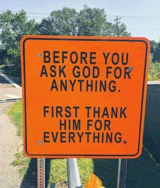 Be Thankfull to God…. BEFORE YOU ASK GOD FOR ANYTHING FIRST THANK HIM FOR EVERYTHING AND REPEAT IT EVERY TIME
